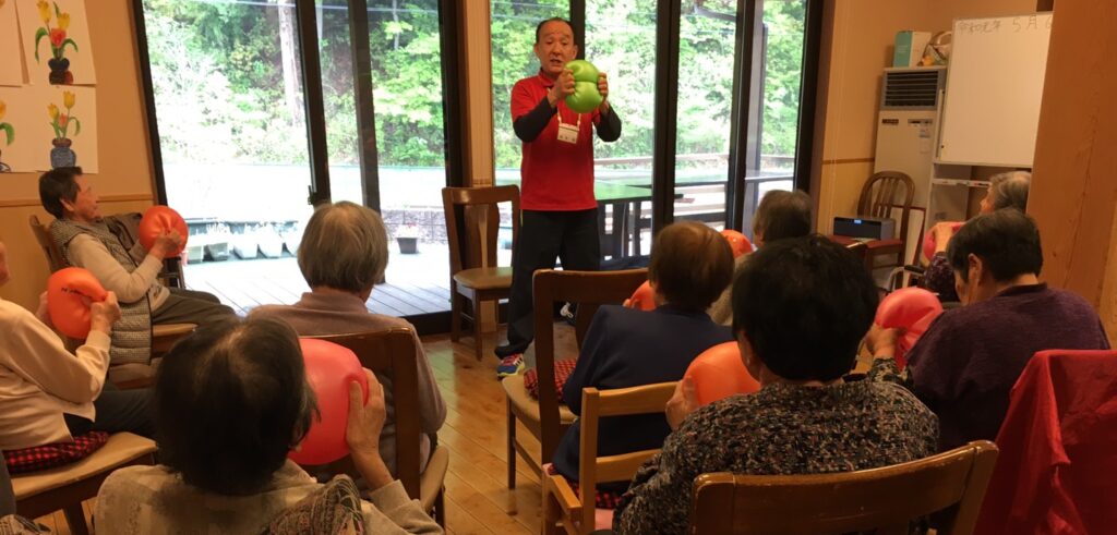 私も20数年健康増進や介護予防等の活動を進めておりますが、 今後はガンバルーンを使用した様々なプログラムの開発・普及促進